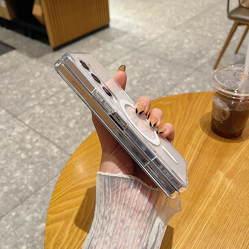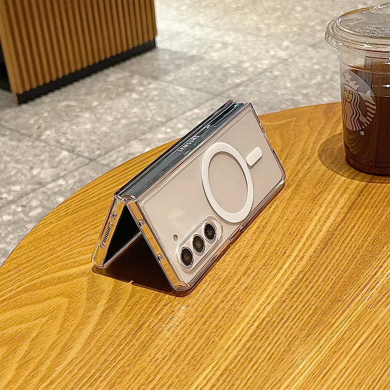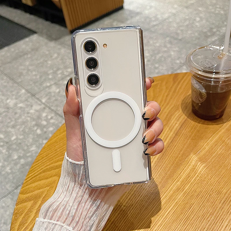 Coque rigide et fine de luxe Magsafe transparente pour Samsung Galaxy Z Fold 6, 5, 4, 3, 5G, résistante aux chocs et magnétique