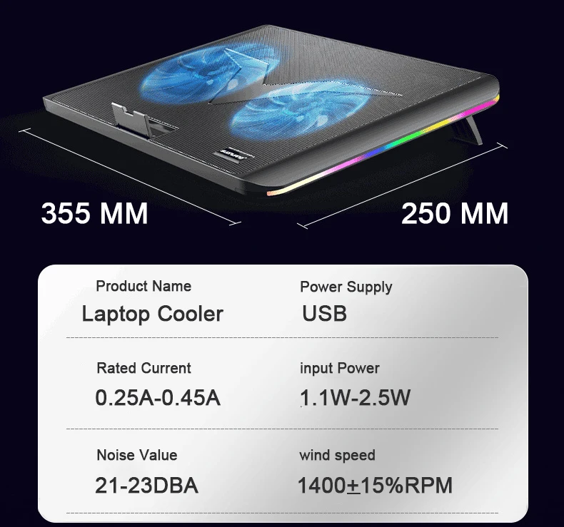 Features 2: laptop cooling stand, cooler pad, base portatil